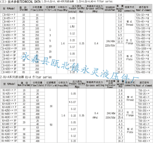 ZU-A QU-A WU-A XU-A系列回油过滤器(回油过滤器)