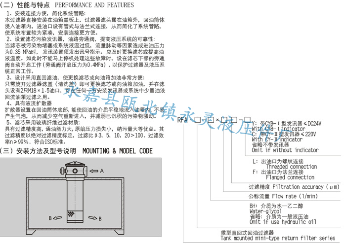RFA系列微型直回式回油过滤器(新型结构代替LHN系列)