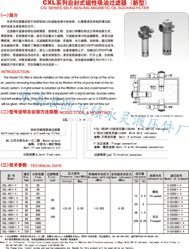 CXL系列自封式磁性吸油过滤器(新型)      ←返回