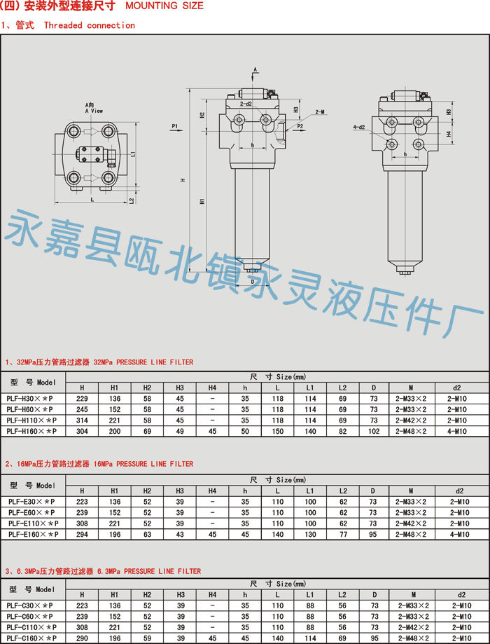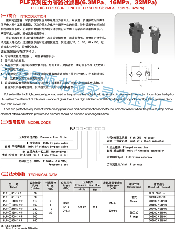 PLF系列压力管路过滤器(6.3MPa、16MPa、32MPa)(压力管路过滤器)