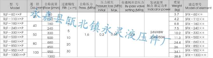 RLP系列过滤器安装在液压系统回油管路处,用来清除油液中诸元件磨损的金属粉末及橡胶质等,使流回油箱中的油液保持清洁。该过滤器的滤芯采用化纤过滤材质,具有过滤精度高,通油能力大,初始压力损失小,纳污量大等优点,并装有压差发讯器及旁通阀。当滤芯堵塞到进山油口压差为0.35MPa时,便发山开关信号,此时应更换滤芯;如果小能马上停机或无人宋更换滤芯,装在滤芯上部的旁通阀会自动开启,以保护系统。