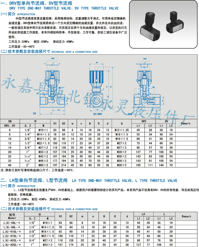 LA-DRV型单向节流阀,L-DV型(液压辅件)